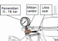 Pikaliittimen alla on R3/8" muhvi valvontalaitteen paineanturia
